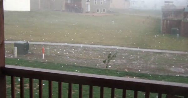 Softball size hail explodes around these cars and take off a windshield