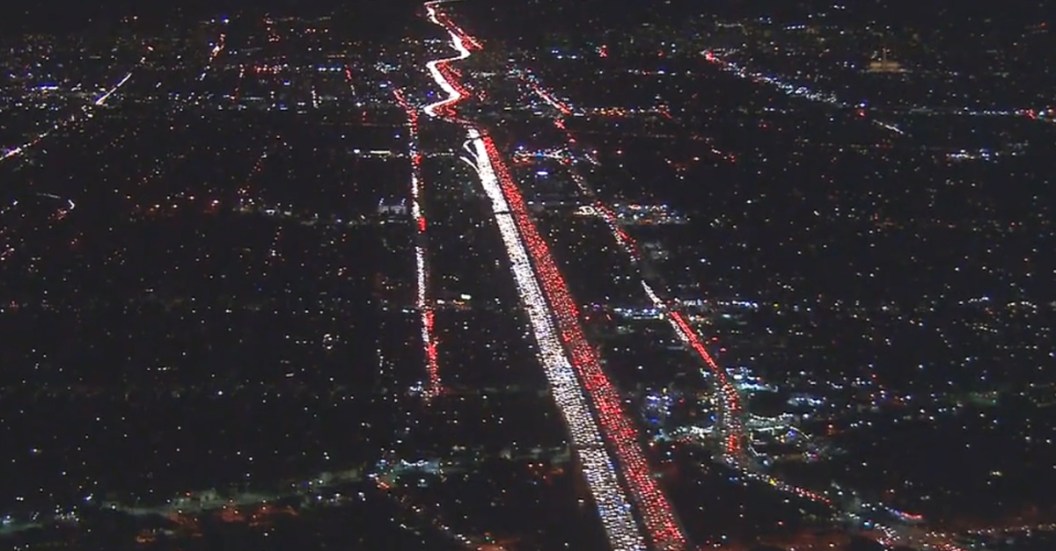 [VIDEO] Los Angeles Gridlock On 405 Freeway Makes For City-Wide Light Show