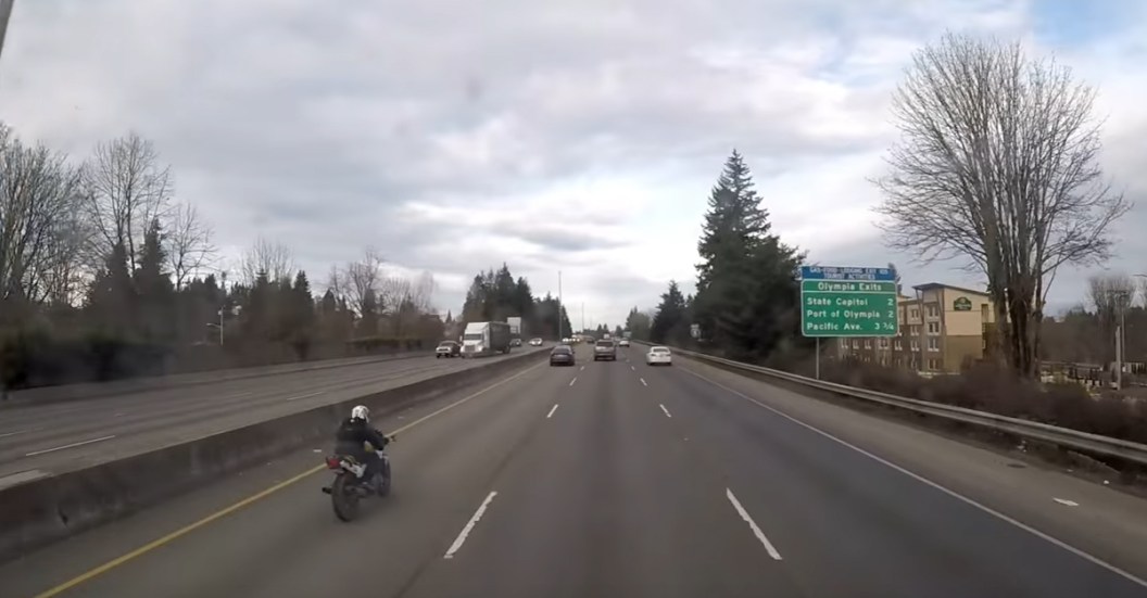 A trucker's dash cam caught footage of wreck. While it's not that crazy of a thing to capture, it's what happened to the biker right after the crash that's so unique and amazing. Both the car he hits and the motorcycle itself are clearly speeding entirely too fast as both are forced to rapidly brake once they catch up to the rest of traffic. However, once the biker runs into the sedan's rear he winds up riding on the back of the car right on top of the trunk!