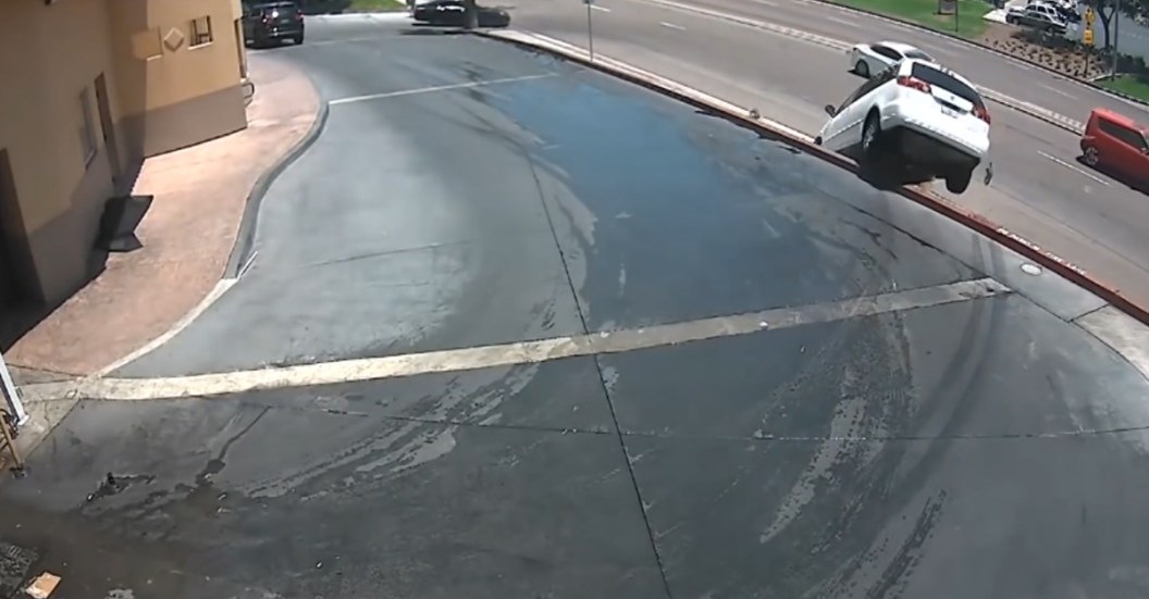 We're not even remotely sure what was going on here at this car wash near Billings, Montana, but it's fairly obvious that something was going wrong. Upon leaving the car wash stall, the big white minivan goes from a leisurely pace to whipping their tail end around too quickly and before you know it, they are upside down and on the curb below with a burst fire hydrant beneath them spewing water into the street. Thankfully, everyone was fine, but we're going to guess their car needed more than just a wash after this hilariously stupid incident.