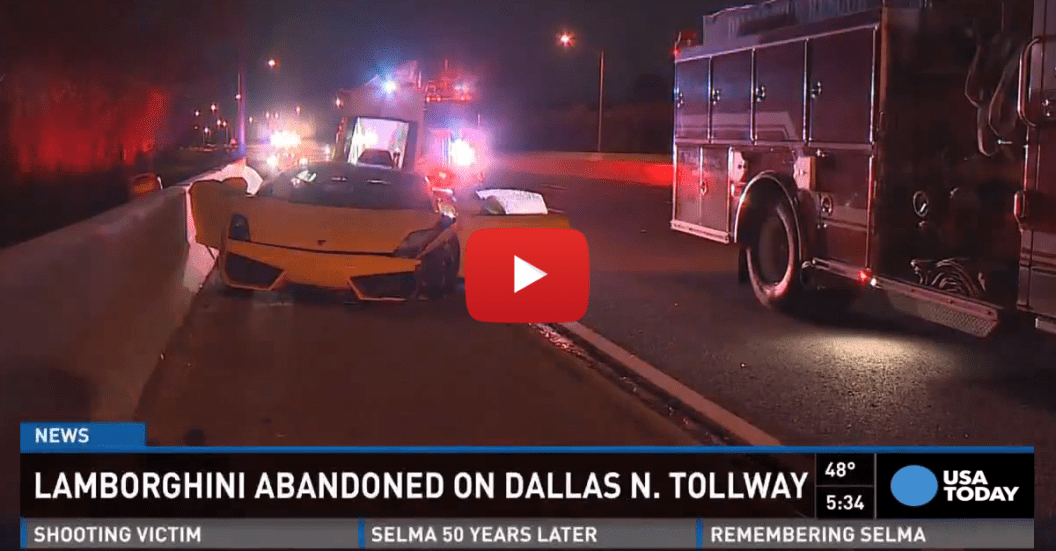 Police in Dallas, Texas found this abandoned Lamborghini on the side of a highway. It was wrecked as though it ran into the wall late in the night and the driver just apparently left it behind. It's been revealed to have been rented out to an individual via a local company that rent high end sports and luxury cars. Did the guy leave it behind thinking he wouldn't be found?