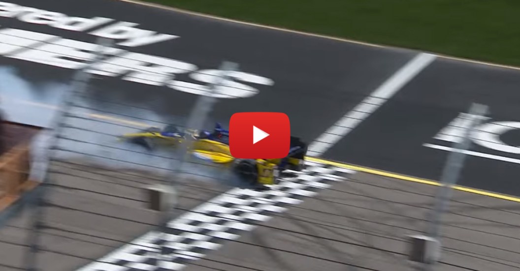 In a moment that seems more at home in the world of Talladega Nights, Indy Car driver Marco Andretti saves his car from spinning out into the wall at the Iowa Speedway practice shootout and manages to look cool as hell, as he burnouts over the checkered finish line backwards, looking like he did it on purpose. I guess in a way, he kinda did do it on purpose.