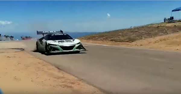 Drive it like you stole it, right? I think the driver of this all-electric NSX took that advice a little too seriously and did the entire Pikes Peak hill climb with the car alarm blaring. The annoying noise is a safety precaution to alert people to the coming of the NSX as otherwise there would be no audible warning that a 1,040 HP missile was coming their way. This hill climb special was built by ditching the NSX's hybrid twin turbo v6 and instead placing one 260hp electric motor at each wheel. The result is a surreal moment when the car almost instantly disappears off the line without the ear-splitting cacophony associated with Pikes Peak cars. Haters gonna say it's fake.