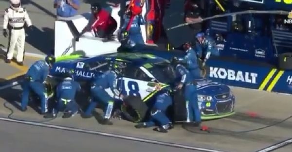 Johnson's team has been the target of criticism lately over situations involving work in the stalls. In Charlotte, Johnson stopped outside of his pit box to allow a crew member to secure lug nuts. Work done outside of the pit box calls for a penalty, but NASCAR ruled that because Johnson partially backed up his car and because the work done was tied to safety, there would be no penalty.